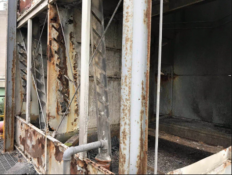 外殼的拆除還算簡(jiǎn)單,都是用螺栓固定的,估計(jì)不到一個(gè)小時(shí)就能搞定。假如螺栓銹透了擰不開,大可用氧氣切割,不必心疼。外殼拆除后,納滿污垢的閉式冷卻塔盤管就顯露出來(lái)了,將其拆下,閉式冷卻塔的更換工作就完成了一半了。