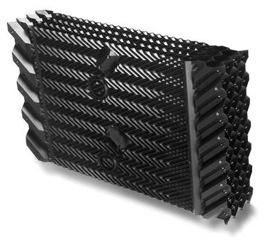 填料是冷卻塔最重要的部分,它的效率高低,取決于冷卻水與空氣在填料中充分接觸的程度。本公司的填料耐溫-20℃~50℃,耐老化、性能優良、抗紫外線,壽命長。其優點如下: